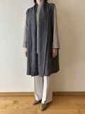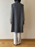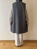 ウール100%素材のショールカラー、ロングベスト。