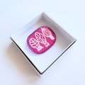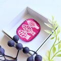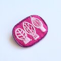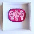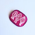 サーモンピンクの地に黒い花の刺繍、ありそうでなかったこの色のとりあわせ、すてきなブローチでした。