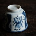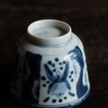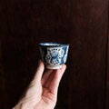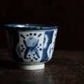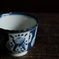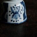 ギザギザの縁◆青で素敵 伊万里 花文染付猪口 向付 骨董・antiques 古民家 江戸末期