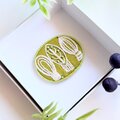 オリーブグリーンのコットン地に小さな木の葉を丁寧に刺繍しました。