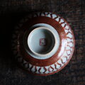芸術的な絵付け◆九谷焼 花文赤絵白粒金彩湯呑み 古民家 古道具 茶器 工芸品 昭和期