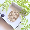 キャラメル色のリネン地に小さな木の葉を丁寧に刺繍しました。