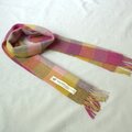 ホームスパン・カシミヤプチマフラー ピンク・黄色チェック