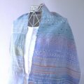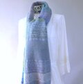 少し濃い水色が入っている側は、とても小さな銀ラメが入った飾り糸を使っていますので、光に当たると、すこしだけ輝きます。