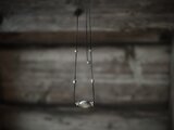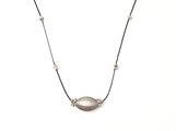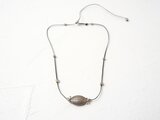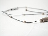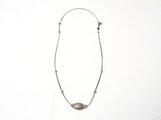 アーモンドの様な形のシルバービーズをセンターに細かなシルバービーズを散りばめ、スッキリと洗練された印象の編み紐ネックレスに仕立てました。