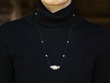 首元に寄り添うショートロングとゆったりと身に付けられるセミロングの2段階で楽しんでいただけるデザイン、、