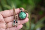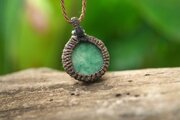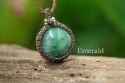 まんまる新緑 半貴石★エメラルド★マクラメネックレス 2104