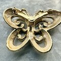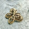 ゴールドトーンのオープンワークバタフライモチーフブローチ。