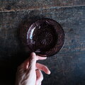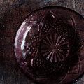 十芒星の文様◆プレスガラス紫小皿 曇りガラス 古道具 古民家 紫 パープル ニュートロ 昭和中期