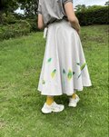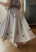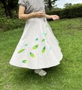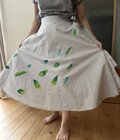 そよ風・羽根の巻きフレアスカート くすみグレー 染色 ステンシル ウエストフリーサイズ