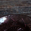 十芒星の文様◆プレスガラス紫小皿 曇りガラス 古道具 古民家 紫 パープル ニュートロ 昭和中期【アタリ有り】