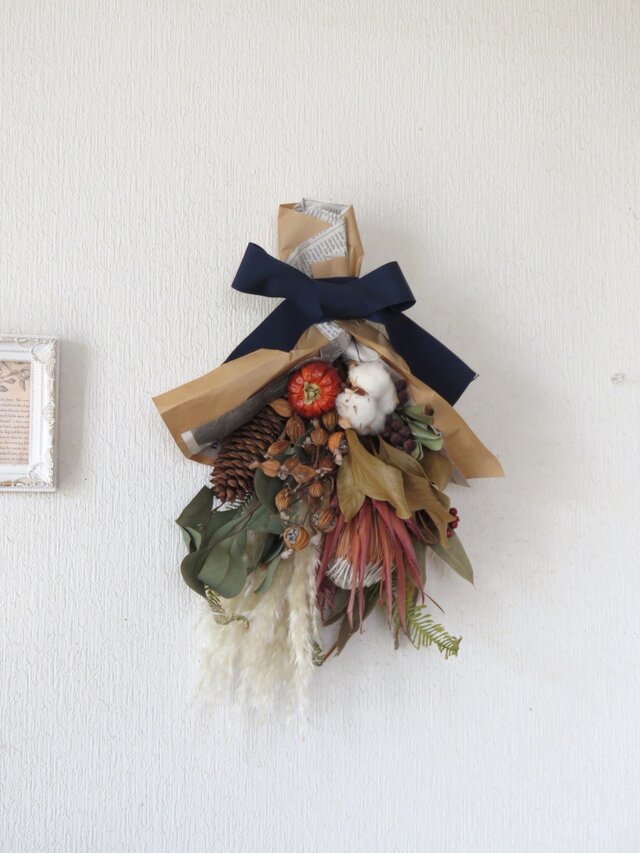*花材:ドライフラワー(キングプロティア・ソラナム・パンパスグラス・バラの実
