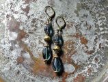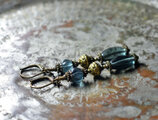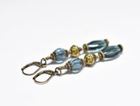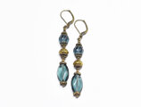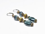ブルーグレー蜜柑玉&楕円型チェコビーズと蓮華ブラスを繋いだピアスです。
