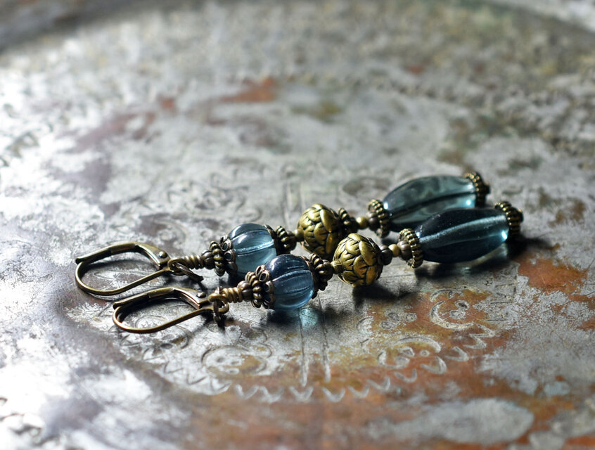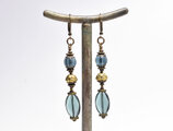 ブルーグレー蜜柑玉&楕円型チェコビーズと蓮華ブラスのピアス