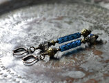 インディゴブルーフランスヴィンテージとラブラドライト、蓮華ブラスを繋いだピアスです・