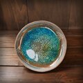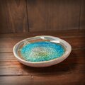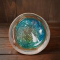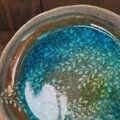 ガラスの溶け合った表面はつるりとしていて水を溜める事も出来ます。キラキラ光る細かな貫入の下にほんのり透け見える模様は不思議と奥行きを感じさせます。深く静かな世界をお楽しみ下さい。