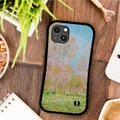 この作品は、クロード・モネがジヴェルニーの自宅兼アトリエに移り住んだ後の1890年に描かれた風景画です。緑豊かな木々や広大な草原が、柔らかな春の光に包まれており、モネらしい色彩と筆致で表現されています。