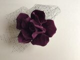 赤紫の色に染めてた薔薇にチュウルレースをつけてあります。