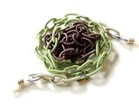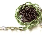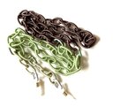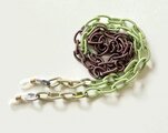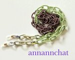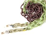 ポリエステルの糸を巻いてつくった サテンのチェーンのように見えるチェーン 3色(紫・パールグリーン・ピスタチオグリーン)で とても軽いメガネチェーンを作りました。
