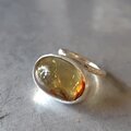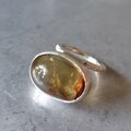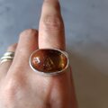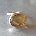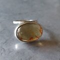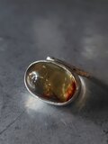 スモーキーなクォーツに朱色のリモナイトを内包したリモナイトインクォーツをシルバーリングに仕立てました。