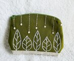 リーフ刺繍のポーチ(キナリ・グリーンティ)