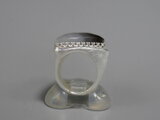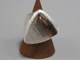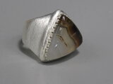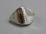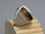 リングのサイズは13号、重さは22g、最大幅は25mm、手のひら側は9mm、金属部分は純銀です。