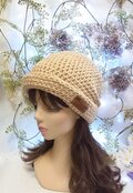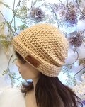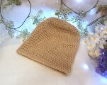 ニット帽 ビーニー ワッチキャップ レザータグ付き きな粉ベージュ