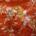 着物リメイク ワンピース|洗える化繊素材&帯ベルト 艶やかな朱赤に、霞と流水を背景にした四季草花がこぼれる KW-1094