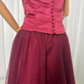 カラードレス ボルドー色 くるみボタン ツーピース ソフトチュール 床付く ふわふわ 前撮り 二次会