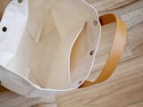 持手は合成皮革。便利な内ポケットとマグネットボタンが付いています。