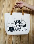 仲良しのフレンチブルドッグ3匹が並んだ小さなトートバッグです。