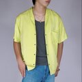 着物リメイク スナップシャツ シルク メンズML スナップボタン オーバーサイズ オープンカラーシャツ リラックスフィットM