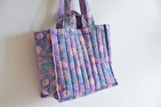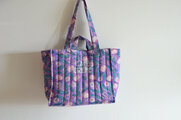 目にも鮮やかな美しい色彩、繊細ながら温もりと素朴さを感じさせるハンドブロックプリント。コットン100%素材のキルティングトートバッグはオールシーズン大活躍。