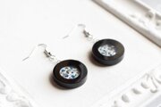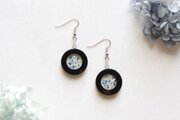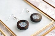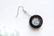 黒いレジンで透明なレジンを囲み、金箔と青色のお花を散らした、静謐で可憐なピアス。