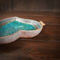 ガラスの溶け合った表面はつるりとしていて水を溜める事も出来ます。キラキラ光る細かな貫入の下にほんのり透け見える模様は不思議と奥行きを感じさせます。深く静かな世界をお楽しみ下さい。