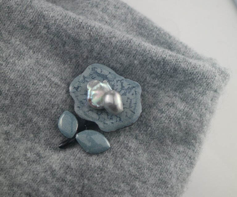 とっても大きなブローチが到着しました。 大きさにびっくりするとともに、毛糸と七宝焼きの異色の組み合わせのインパクトにもびっくりです。 この冬、大活躍しそうです。 ありがとうございました。