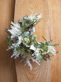 風が森を吹き抜けるように、ユーカリとパンパスグラスを立体的に紡ぎ、温かみのある三日月リースを仕立てました。