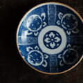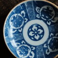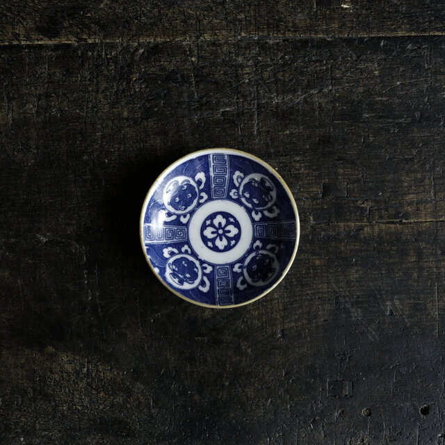 花と巾着◆雷文繋ぎ 時代物 花文印判小皿 骨董・antiques 古道具 丁寧な暮らしに。明治~大正期