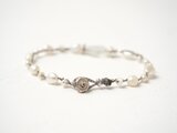 アンデシンラブラドライトをセンターに、シルバーと淡水パールを編み込んだブレスレット