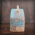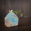 小鳥が屋根にとまった一輪挿しです。時を経た様な野性的なテクスチャー。気ままに現れるブルーが印象的に映えます。
