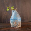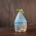 どっしり落ち着いた丸い屋根と壁。気ままに現れる濃淡のブルーが華やかです。煙突が挿し口になっています。ぽこっと置けばほっこりした風景が広がりなんとなく安心します。おうちのかたちは心の中の守られるべき領域をも象徴している様にも思います。