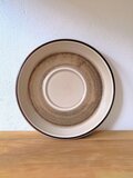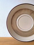 ライトベージュに濃いブラウンのラインが施されたデザインは、シンプルでありながらも洗練されています。釉薬の発色に個体差があり、まるで1点ものの作品のような表情を楽しめます。