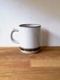 アイボリー色の陶器で、ブラウン色のラインが外側に一周入っています。