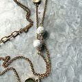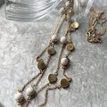 ホワイトマーブルストーンビーズがアクセントになった、ゴールドトーンダブルネックレス。