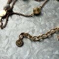 ゴールドトーンの艶のあるプレーンなディスクプレートと、大理石のようなマーブルストーンの組み合わせと、ダブルチェーンが上品でラグジュアリーな存在感を放ちます。アジャスタブルで長さを調整でき、着こなしの雰囲気でお楽しみいただけます。