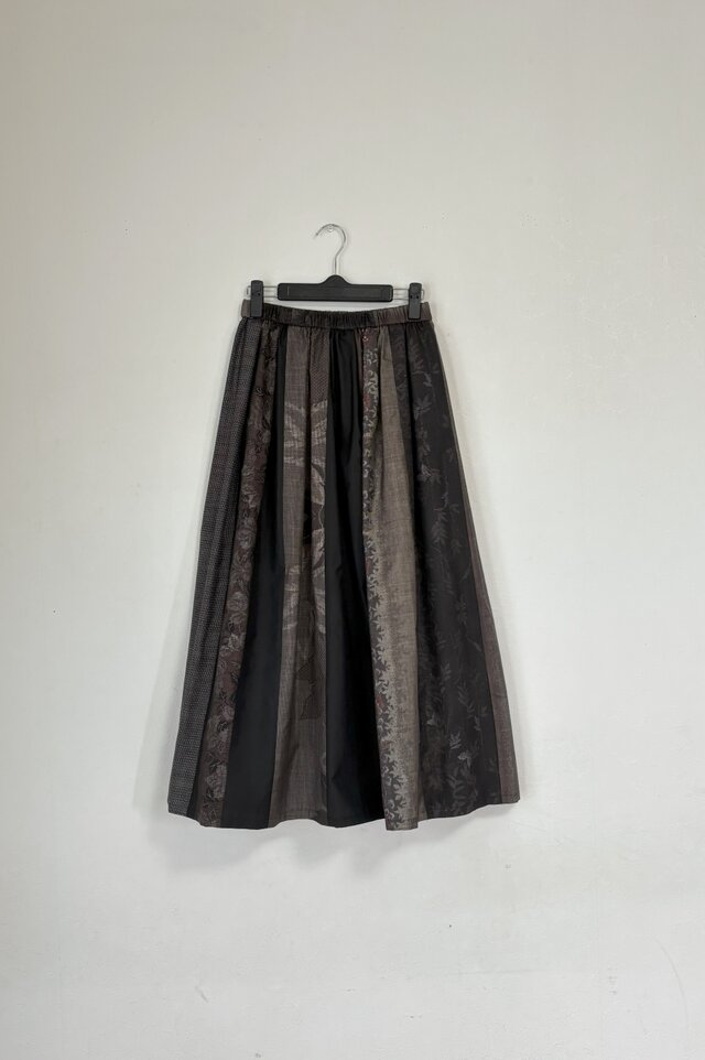 アンティーク着物、泥大島紬のパッチスカートです。