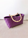深みのあるパープルカラー1色で編んだ、シンプルなプラカゴトートになります。
