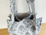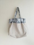 バッグ口が つぼまった形に対して、下側の荷物が入る辺りには膨らみを持たせてみました。
