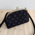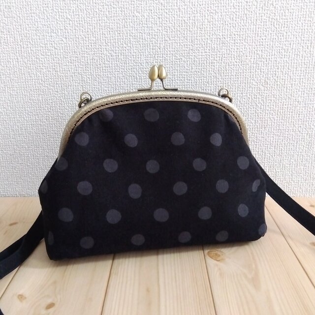 コーデュロイのがま口ショルダーバッグ ポシェット 20.5cm口金 ドット ブラック系 386