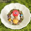 ウッドビーズ、樹脂粘土、アクリル絵の具、レジン、天然石等使用。
